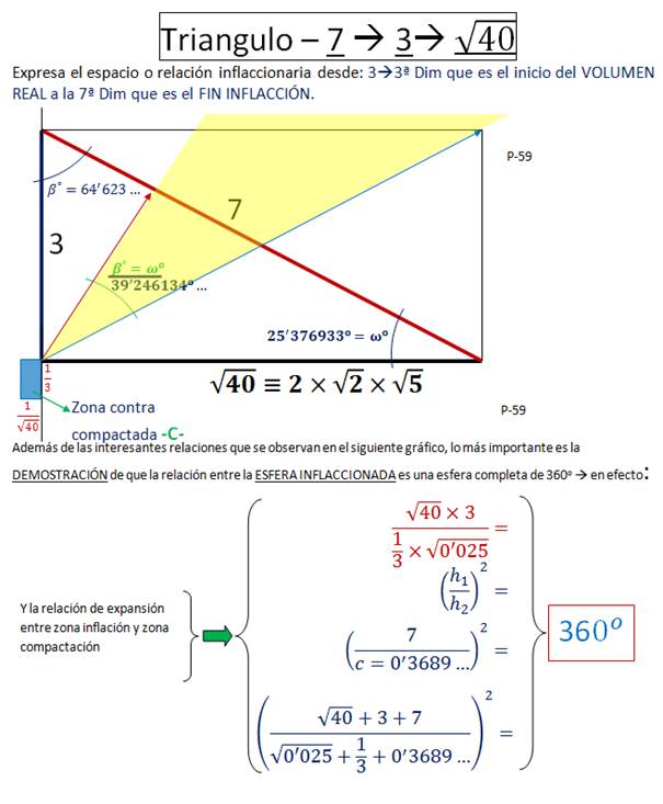 Triángulo Rectángulo INFLACIONARIO Nota.- Este triángulo y todas sus relaciones, dada su complejidad, ya que por sí solo, será motivo en su momento de más de un tema, lo ponemos después de estas exposiciones, para no distorsionar y entorpecer la continuidad de las mismas. De esta manera, por otra parte, podrán empezar a observarlo y meditarlo, lo que facilitará la comprensión de las futuras exposiciones sobre sus contextos. Pero no sería propio extendernos en él y con ello dificultar la asimilación del presente tema.