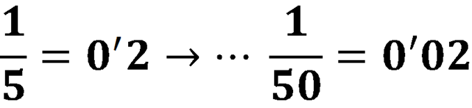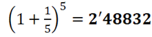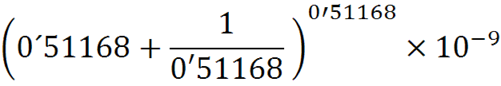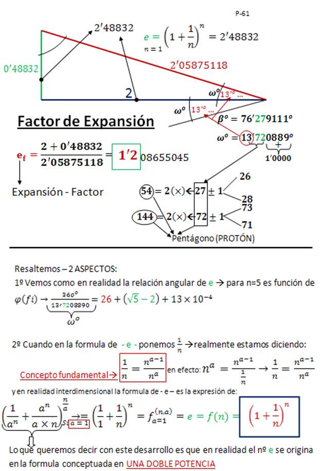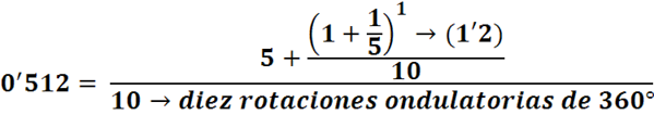 El cálculo es evidente. Lo importante es la conceptuación del 0'512.- Es extremadamente simple lógica y fácil de comprender. Como estamos conceptuando el inicio del proceso, estamos POR DEBAJO DE LA UNIDAD y por lo tanto el cómputo de 5 DIMENSIONES MÁS SU QUINTA PARTE es por debajo del -1-. O sea que en lugar de debemos poner **************************************************************************´ Podría parecer que lo correcto sería, teniendo en cuenta que el proceso configurativo del nº -e- en la fórmula de EULER cuando n=5, es: Si tomáramos la parte inferior, por debajo de la Unidad à 0'488 32. Verán porque resaltamos el -32-. La otra parte EN QUE SE DIVIDE LA UNIDAD sería 1-0'48832 = 0'51168 Y parecería que lo que deberíamos descontar (restar) de la parte primera del proceso de cálculo debería ser: