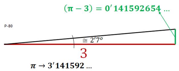 Esta fracción decimal se interpreta SOLAMENTE y por tanto de forma PARCIAL E INSUFICIENTEMENTE EQUIVOCA como la RELACIÓN ENTRE LA LONGITUD DE LA CIRCUNFERENCIA Y SU DIÁMETRO. Conceptuándose solamente de forma ESTÁTICA, sin tener en cuenta que la ESFERA REAL, es ONDULATORIA, y por tanto tiene un Radio máximo correspondiente a un determinado múltiplo según cada caso concreto del de la Esfera Universal Máxima que hemos referidoà 4´236' y un Radio mínimo correspondiente también en cada caso a un determinado múltiplo del de la ESFERA MÍNIMA à 4´188' tambien antes referida. Pero, como ni se comprende ni se conceptúa bien la ONDULACIÓN, ni se intuye siquiera que en realidad esta fracción expresa Y DEFINE UNA DE LAS DOS PARTE del PROCESO DE FORMACIÓN DE LA ONDULACIÓN. El nº clásico de PI= 3'1415926'. Nos permite SOLO calcular LA ZONA ESTADÍSTICAMENTE MÁS PROBABLE EN UN MOMENTO CONCRETO DE LA ONDULACIÓN DE LA SUPERFICIE DE CÍRCULO-ESFERA-CIRCUNFERENCIA. Pero no su máximo ni su mínimo ondulatorios y por supuesto mucho menos aún SU PROCESO ONDULATORIO CONFIGURATIVO REAL, ya que: