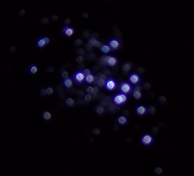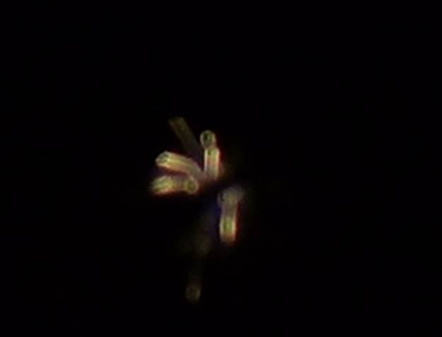 4-/ Maravillosa instantánea en la que hemos podido sorprender un elemento central perfectamente definido ya en fase exagonal-azul, rodeado de 8-9 unidades saliendo aun de la HIPER VELOCIDAD, en fase 1-2, colores amarillo blanquecino o amarillo y bordes entre redondo-cuadrado y alguno insinuando ya el exágono. Vean la BRUTAL DIFERENCIA DE VELOCIDAD entre la velocidad LUZ de la azul, ya acercádose a la fotónica, y que ''PARCE ESTÁTICA'' en comparación con las primigenias amarillas, acabando de salir de c12. En estos elementos se aprecian nítidamente los bordes y la línea magnética central creadora y direccionalizadora.