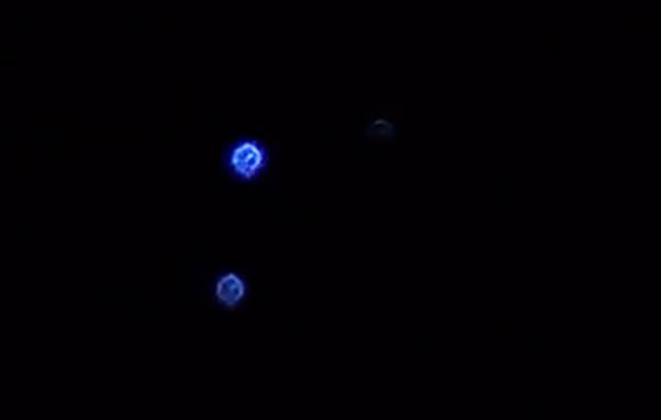 1-/ Múltiples nódulos planos, ya en fase-3, totalmente hexagonales y azules Obsérvese el perfecto detalle del ''botoncito'' central, que corresponde a la 1-Línea del Primer Universo Lineal. O sea la LÍNEA DEL MAGNETISMO que DIRECCIONALIZA Y CREA UN PLANO ONDULATORIO PERPENDICULAR A ELLA. Que en forma iluminada blanco amarilla y de contorno REDONDO en 1ªfase. Amarilla-Azul CUADRADA en 2ªfase, y claramente AZUL y de contorno netamente definido en forma EXAGONAL EN LA 3ª fase. Entre 2ª y 3ª, excepcionalmente logramos captar un ''fracasado'' intento de estructuración PENTAGONAL (intento de formación de materia à protón o electrón), que rápidamente pasa a AZUL-EXAGONAL. Ello es debido a que ocasional y excepcionalmente tropieza con algún frente de onda externo de características, al menos parecidas a las que precisaría para mediante su inter-actuación, constituir los frentes de onda en 720 del pentágono' Son unas imágenes de prefecta nitidez que permiten observar la naturaleza ondulatoria del borde, el hundimiento entre centro y borde, y la precisa definición de la línea central correspondiente a la conciencia universal. Entiéndase que lo que observan es solo una parte iluminada del PLANO alrededor del eje central o 1ª dimensión. No caigan en la trampa de creer que lo que ven es lo que existe y que están en un ''VACÍO'', o se que alrededor NO HAY NADA. En absoluto. Es AL REVÉS. Lo que ven iluminado es una zona MOMENTÁNEAMENTE ILUMINADA del BIPLANO que en su avance va creando la LÍNEA, el-1, la Conciencia Foto-Magnética, a la que también ven falsamente en forma de estructura lumínica'