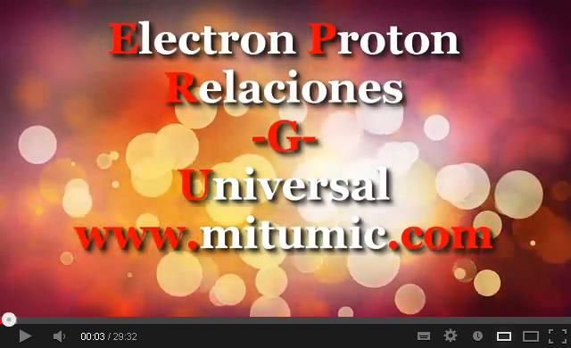 Electrón-Protón.Relaciones-G-Universal Nota.- Las primeras exposiciones gráficas a las que hacemos referencia en los 2-VIDEOS de este tema, en especial en el PRIMERO de los dos. Les sorprenderá no visualizarlas por escrito al principio de este tema como sería lógico según el orden expositivo. Porque son gráficas correspondientes a otros temas. Y solo se hacemos aquí referencia a ellas como necesario componente expositivo. Ya que pertenecen a otros temas más propios de sus contenidos, y por ello, y para no confundir al lector, y NO DIFICULTAR LA COMPRENSIÓN de los textos, se han ubicado, como TEMAS AGREGADOS de apoyo complementarios y de forma SEPARADA, al final de esta exposición. Tomando como referencia las SIGUIENTES cifras REALES