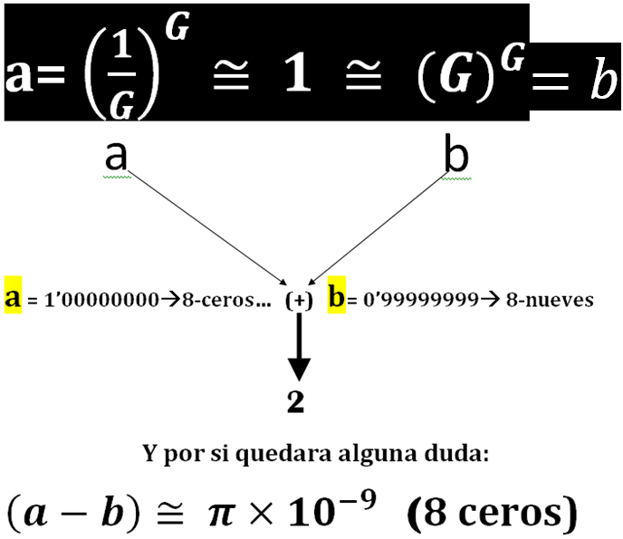 à16'254452705745838069379442662575' Ángulo-Luz. Y como a valor del NÚCLEO ENERGÉTICO ONDULATORIO del Electrón SIN el Spin de Carga: G= Este valor de -G- como ya hemos referido repetidamente, se venía conceptuando como ''CONSTANTE de GRAVITACIÓN UNIVERSAL'' Y observemos y valoremos los importantes datos y conceptos expuestos a renglón seguido, que luego iremos desarrollando y conceptuando en el texto.- Vean la BISIMETRÍA a ambos lados de la Unidad, del proceso estructural de la ondulación, de la energía de BOLA ENERGÉTICA compactada del ELECTRÓN. Llamaremos -a- a la potencia G de la inversa de G. Y llamaremos -b- a la potencia directa -G- de àG.