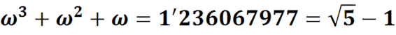 Y 1-0'6180339-0,236067977 = 0'145898123' = (0'3819661)2 Pero es que además: 0'3819661' - 0'14589123' = 0'236067977. Que sería otra TRÍADA CONFIGURATIVA DE UN TODO. Tenemos pues DOS TRÍADAS configurativas de SU UNIDAD RESPECTIVA: UNA TRÍADA que sería 0'6180339 y 0'381966, cuyo TODO es el UNO-1. Y CUYA DIFERENCIA entre ambas, o sea el VECTOR DE EXPANSIÓN que generan SERÍA 0'236067977, QUE ES LA DIFERENCIA ENTRE AMBAS. Y OTRA TRÍADA que sería 0'3819661 y 0'236067977, cuyo TODO , o sea SU SUMA en este caso no sería el -1-, sino el 0'6180339. Y cuya DIFERENCIA ENTRE AMBAS, o sea su VECTOR DE EXPANSIÓN sería 0'145898123' ¡¡Que