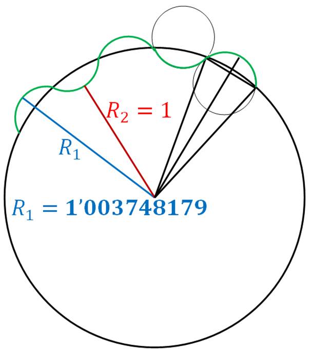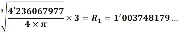 0,38339768804294227569963830810361= r Que resulta ser è r Y el radio -R- de la ESFERA MAYOR es como acabamos de ver hace un momento: 1,0037481791734360298924608498014' = R Y caramba ¡¿qué casualidad?!