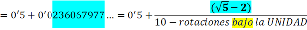 más abajo, o sea tres decimales por debajo de la Unidad, o sea UNA ROTACIÓN(3600)MENOS,