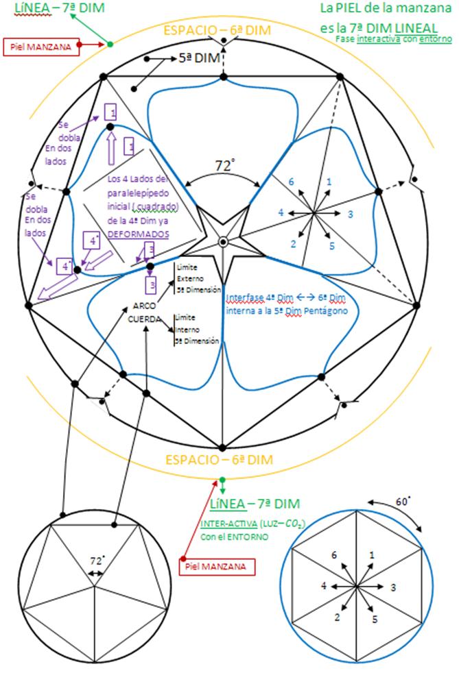 TRIÁNGULO GENERATRIZ è Dado que nos permitirá apreciar por una parte podemos la interpretación geométrico matemática de la interacción de los frentes de onda de 3ª Dim y 4ª Dim al configurar la 5ªDim o tope máximo del volumen. Y a su vez nos permitirá ver el paso siguiente al iniciar la ''Luz'' o sea los FOTONES, en la interfase 5ª-6ªDim.