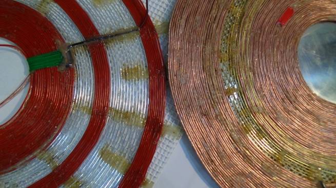 Andreu: En todos los casos no he conseguido nada. Cuando vi el video de los transformadores y que los amigos catalanes pudieron reproducir con éxito, intenté replicar el modelo pero con materiales algo diferentes, al fin y al cabo deberían funcionar. Utilicé dos placas de aluminio de envases de cerveza aislados que me dieron dos pequeñas salchichas de unos 15 centímetros y sobre ellos hice las bobinas. Los conecté a la red y no funcionaron. Intenté agregarles otras cosas que tenía por ahí y nada. Luego recordé que en mis incursiones de electricista, aquí en mi país utilizamos un busca polo para saber cual cable es el "vivo" y cual el neutro. Con esto pensé que la red no nos suministra dos líneas de corriente alterna sino una y otra neutra, que a veces podemos reemplazar con una toma a tierra y seguimos teniendo electricidad. Con lo cual eché mano a un inversor que funciona con una pila común de nueve voltios y tiene una salida alterna aproximada a los 120 voltios.