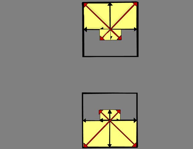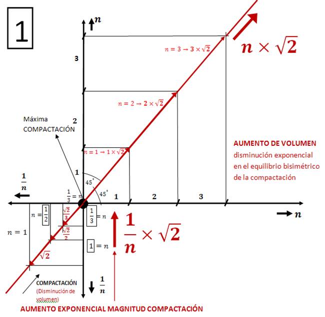 Lo que pretendemos representar en el gráfico anterior es un esquema , o primera fase de DOS de los CUATRO procesos simultáneos QUE SE DAN EN CADA UNO DE LOS TRES PLANOS EUCLIDIANOS de compactación , o de dilatación o inflación. Como vemos el proceso de dilatación es proporcional al de compactación, pero exacta - mente en su orden inverso.