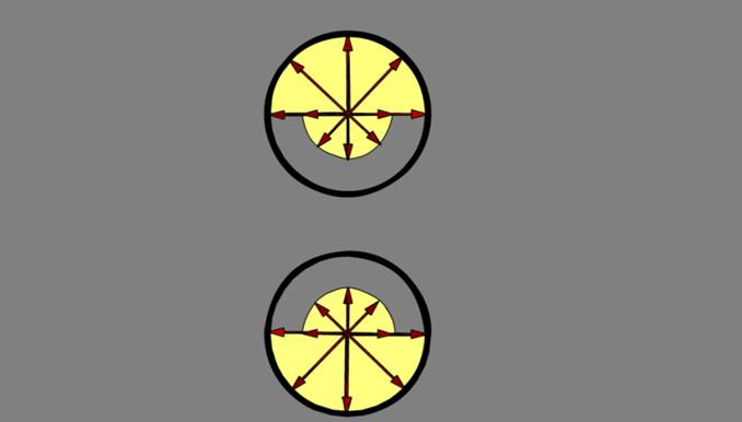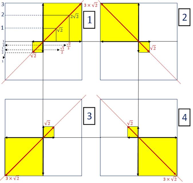 Porque en realidad la ''DIMENSIÓN'' è 1-2-3-4-5-6-7, de cada radio resultante a través de sus generatrices, lo que expresa es 1º Longitud-en 1ºdim. 2ºSuperficie en 2ªDim. Y 3ºVolumen-en 3ªDim. Y para que no se pierda ni gane energía, ni se genere un volumen ''FANTASMA'' a un lado del eje. Volumen fantasma imposible, si no se genera lo mismo en iguales magnitudes al otro lado del eje de simetría que estemos utilizando como referencia. Eje que siempre hará funciones de 1ª-Dim-7ªDim (ya lo veremos) lo mismo debemos hacer con los esquemas 2 à 4. Y hagamos lo mismo, como supongo que ya intuyen, superponiendo los cuatro esquemas y tendremos un imagen sencilla de compensación inflacionaria total en el plano NOTA: INFLACIÓN equivale al doble proceso sincrónico DILATACIÓN-COMPACTACIÓN Al superponer las cuatro representaciones, nos aparecerá un minúsculo núcleo central que SI FUERA EN en 5 DIMENSIONES podría corresponder al PROTÓN à No es tan simple. Ya veremos el proceso'. Esto solo es la 1º idea. Núcleo central súper compactado bisimétrico en todos los infinitos radios posibles que pasen por el centro de simetría. Y así mismo, en idéntica forma, aparecería una híper superficie, también BISIMÉTRICA, y también en todos los infinitos ejes posibles del plano que pueden pasar por el centro rotacional o de simetría. Insinuemos ya que sería el ''ENVOLTORIO'' DEL NÚCLEOATÓMOCO-O-PROTÓN, EN LAS CITADAS 1-2-3-4-5-6-7 DIMENSIONES. Este es el motivo por el cual los COU (materia-protones), son capaces de emitir FOTONES (luz ) , en -7- longitudes de onda distintas. Tenemos pués -4- inflaciones bisimétricas ð volumen-compactación, en cada uno de los-3-planos euclidianos.