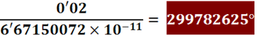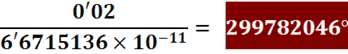 El primer valor de la 7ª Potencia del Ángulo Luz (''Velocidad-Luz''), consecuencia del valor 6'67150072 del Núcleo del Electrón, es el que ponemos a continuación. Nota: Realmente el proceso lógicamente se calcula a la INVERSA. O sea, a cada valor del Ángulo-Luz, le corresponde unos valores consecuentes del Núcleo electrónico, y de la 7ªPotencia del Ángulo-Luz è ''Vel-Luz''. Pero aquí lo presentamos así en parte para no complicarlo más. Pero sobre todo PORQUE AÚN NO HEMOS EXPUESTO EN NINGUN TEMA EL CÁLCULO de los DOS VALORES ONDULATORIOS del ÁNGUO-LUZ Inicial. Primer Valor 299782625,2 2019183713735700533657 Segundo Valor 299782046 , 46094103742814823910424 Diferencia entre estas DOS SÉPTIMAS POTENCIAS DEL ÁNGULO-LUZ: 578,7592507997092087662323344072