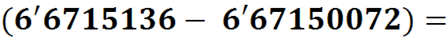 4-4/4-4 que como hemos dicho depende de 6'6715136 - 6'67150072 = 0'0000 1288 Que multiplicado por 14(dos veces el r=7) Esè Dos veces