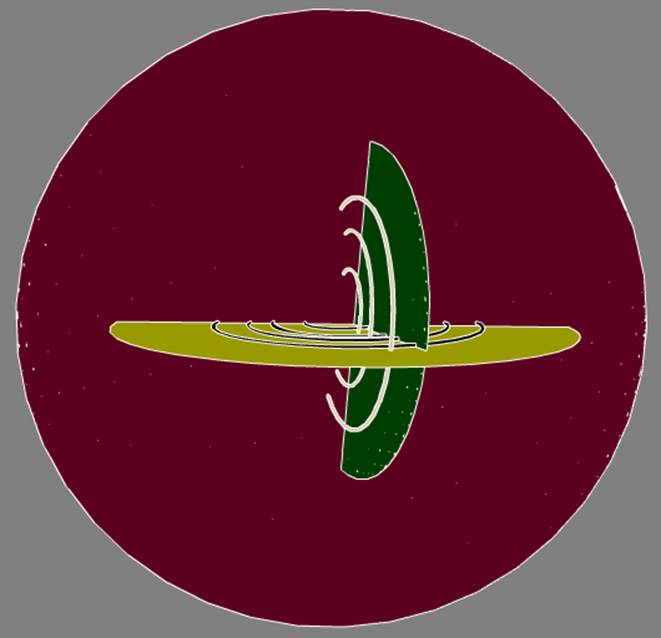 De manera simple y esquemática, hemos intentado representar, que si un volumen de MIC, con un determinado grado de movimiento-inercial-compactado que aquí se insinúa con ondulaciones concéntricas y expansivas. En forma de círculo primero y de esfera después de RADIO = a . Incide sobre otra esfera de MIC de similares características y RADIO = c. Aquellos planos que incidan uno sobre el otro en 900. Cada uno con su INERCIAL. Con inercial queremos significar “velocidad de vibración” en relación a su Dimensión. La cual dependerá no SOLO de su volumen Euclidiano. Si no en resonancia con el obtenido por integración de su superficie obtenida por inducción. Y que al igual que su dimensión o volumen Euclidiano tridimensional dependerá de la magnitud del radio . O sea si decimos que R=nà Significanà veces la unidad matemática que estemos empleando. R = n àFentómetros(fermis) - metros-Angstroms-Parsecs …. Pues aquellos planos que como decimos de una y otra esfera incidan perpendicular- mente uno sobre el otro a modo de componentes vectoriales. Pero que aquí tienen el valor del radio de cada círculo o esfera. Darán como resultante: LA DIAGONAL PITAGÓRICA de las DOS COMPONENTES. Vector resultante, que dará lugar a una esfera con el volumen euclidiano correspondiente a la magnitud de su radio, según el simple cálculo è 4/3 PI (x) R3. Cuya energía resultante de su nuevo inercial. Será la expresada por el volumen de las fórmulas normales obtenidas por integración. Pero según la magnitud Pitagórica del radio de la nueva esfera. O sea volumen en ascenso solo Euclidiano tridimensional y concentración-aumento energético solo en relación aumento dimensional.