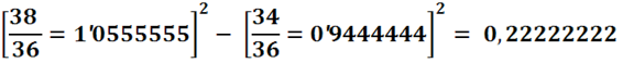 - (0,86111111')2 = 0,555555555