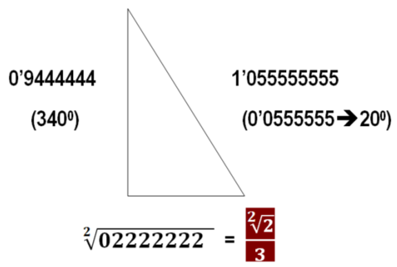 Y naturalmente, simplemente por Pitágoras, la Raíz Cuadrada de 0'8888888, que es el segundo cateto, o sea el CONO de EXPANSIÓN RESULTANTE es la TERCERA PARTE de la RAIZ de -7-