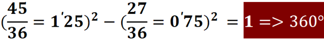 En este -4º Paso, como ya corresponde a la 4ª Dimensión-Fracción, que es UN CUADRADO. Todas las Relaciones Angulares son de 900. Y por ello Tanto los RADIO VECTORES GENERATRICES, como la DIFERENCIA SIMPLE, la DIFERENCIA BICUADRÁTICA, o el RADIO VECTOR CONO RESULTANTE, estarán: En FUNCIÓN de -4- è La CUARTE PARTE de la UNIDAD è La esfera de 3600. Y