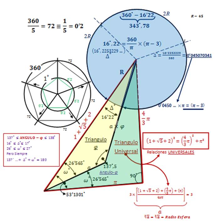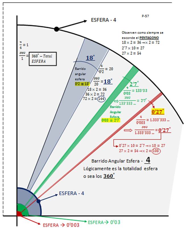 Intento de representación gráfica de las relaciones entre la esfera -4- è4 veces la unidad. Y la esfera 0'2, la doble esfera bisimétrica 0'03 ßà0,003